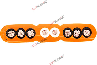 天車扁電纜采用柔性扁平結(jié)構(gòu)設(shè)計(jì),作為天車設(shè)備的動(dòng)力或控制連接電纜移動(dòng)安裝使用。天車扁電纜一般采用隨行懸掛式安裝,也被稱作天車(行車)隨行扁電纜。電纜兩側(cè)可根據(jù)需要置入高強(qiáng)度的鍍鋅抗拉軟鋼絲以增強(qiáng)電纜的抗拉性能。專用外護(hù)套復(fù)合料,可在-15℃低溫下仍然操持柔軟,阻燃。